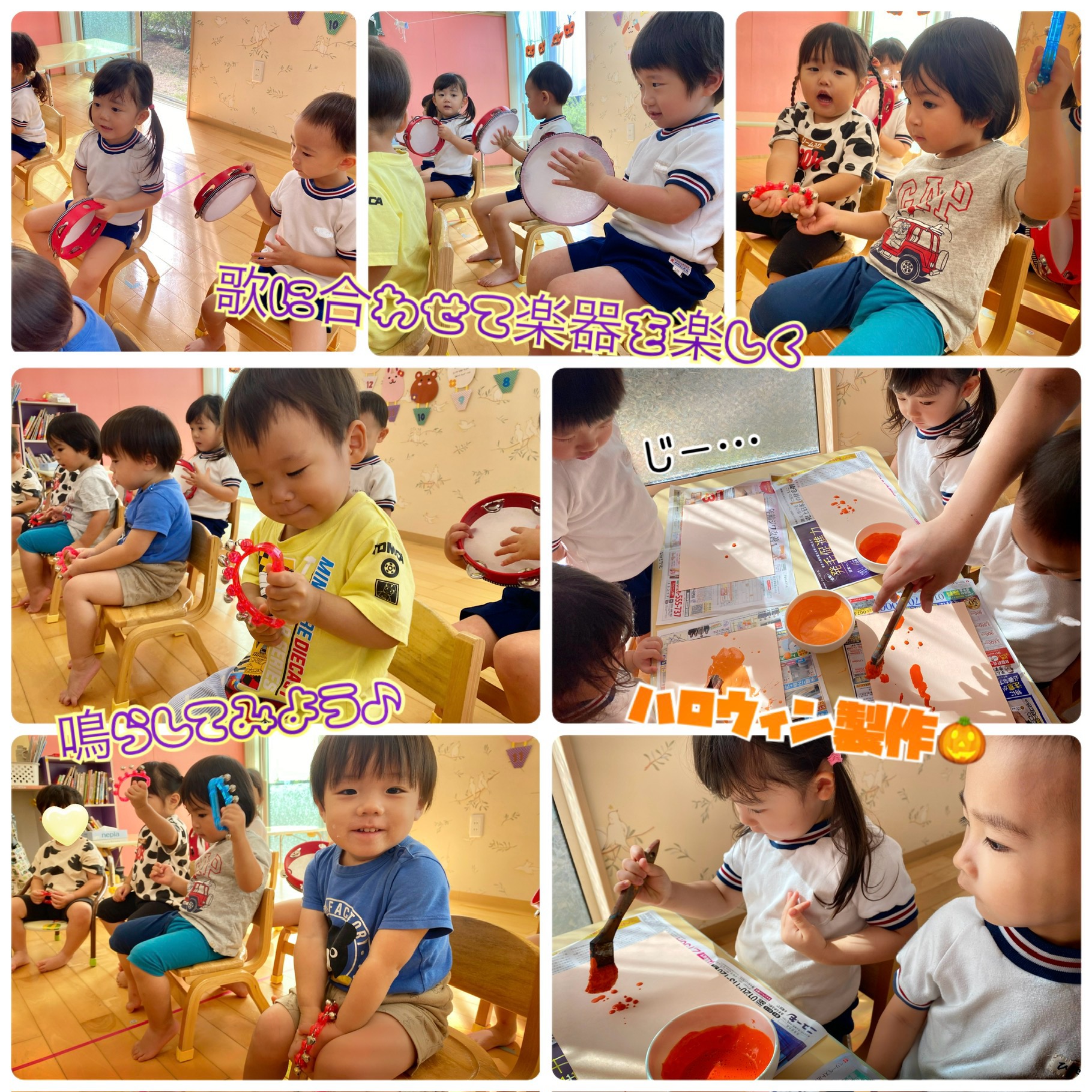 以上児さんは朝マラソンから始まり、未満児さんは戸外へ遊びに行き、秋の気候の中で活動を楽しんでいます🍂