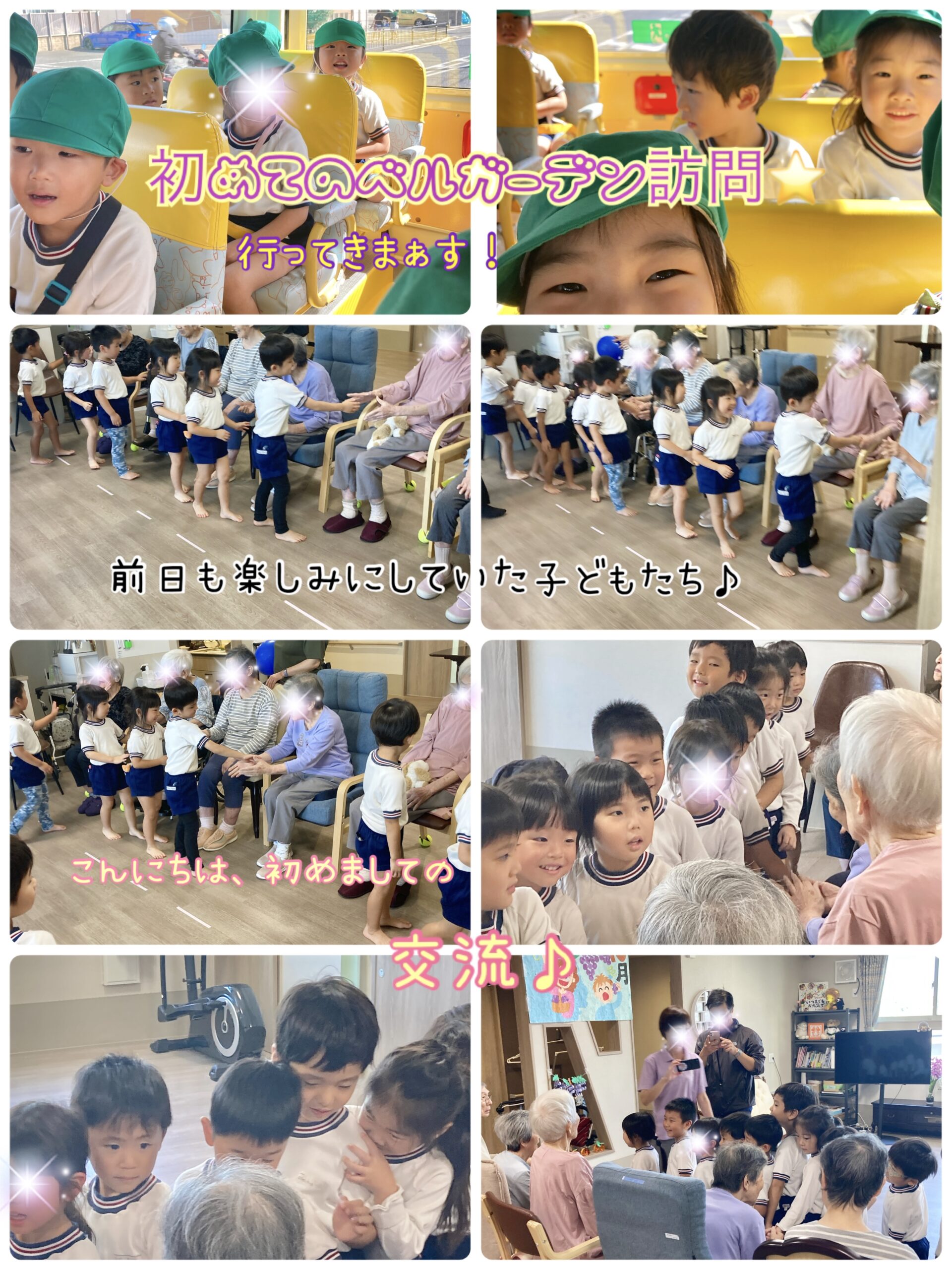 みどり組は初めてのベルガーデン訪問がありました!前日から楽しみにしている子どもたちの声が多く、当日は施設のおじいちゃんおばあちゃん方に、歌やダンスを披露したり、一緒に対戦ゲームをしたり♬