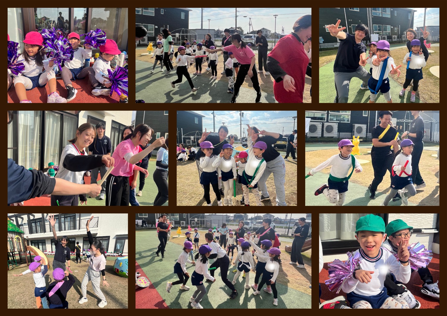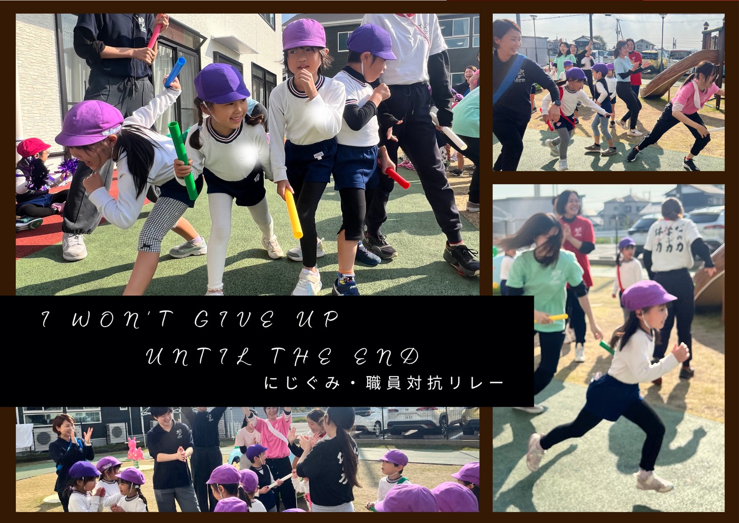 事務長先生も招待して、「にじぐみ・職員対抗リレー」を開催しました。にじぐみさんはこの日を楽しみに毎日の練習を重ねてきました。バトンパスも上手にできるようになり、「絶対に負けない!」と気持ちは十分です!競争することで育つ心も大切にしていきたいと思います。はなぐみさん、みどりぐみさんの応援も後押しとなり、2回戦を戦い抜きました。