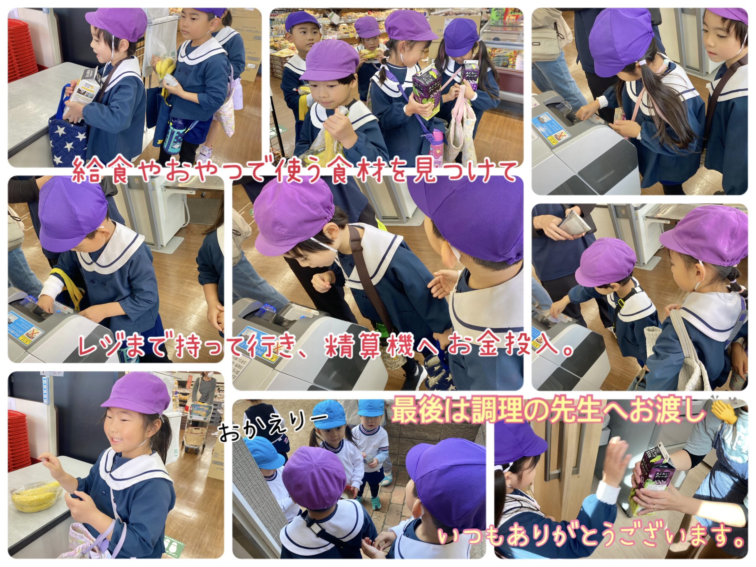 園から近く子どもたちにとっても馴染みのあるスーパーですが、お友だちみんなと一緒にお買い物へ行く、という事をとても楽しみにしていました!
