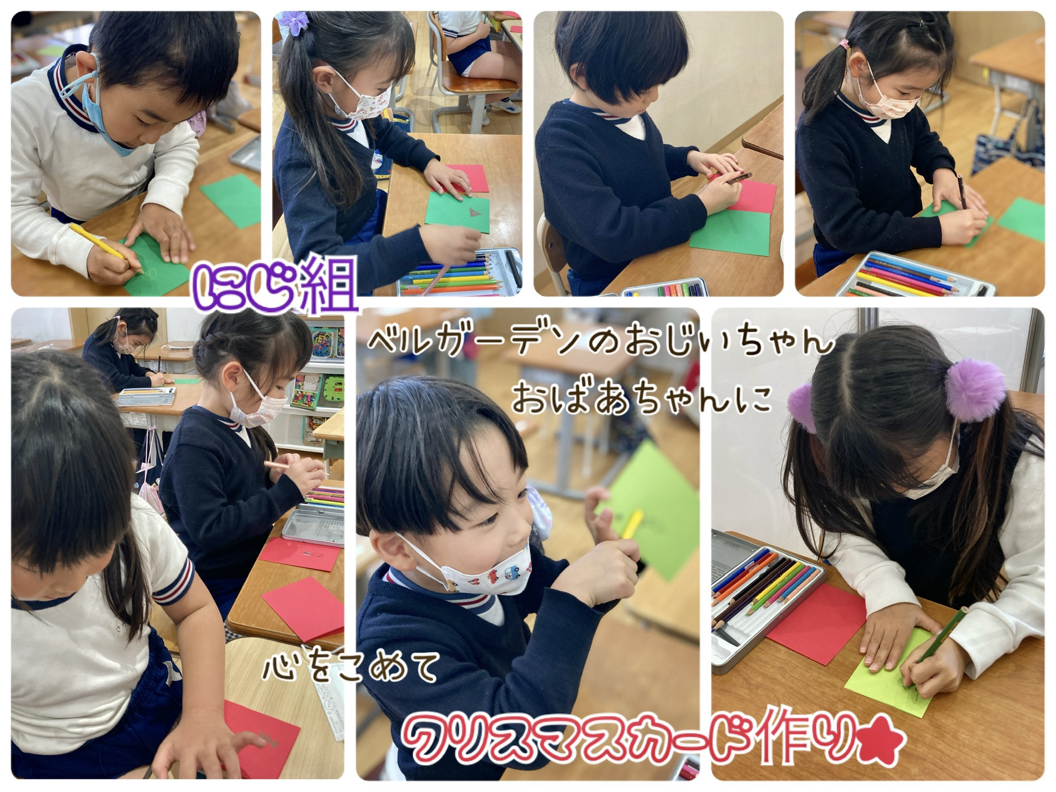 今月はベルガーデンへ訪問の代わりに、おじいちゃんおばあちゃんたちにクリスマスカードを手作りしました✨