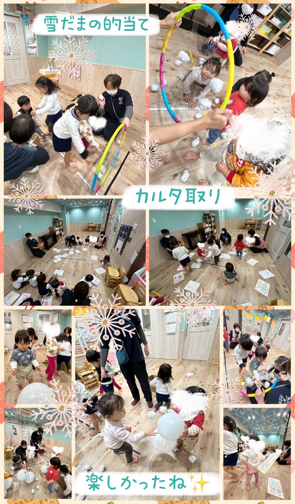 雪だまで的当てをしたり、みんなで作ったカルタを取るなど楽しく過ごしました!
