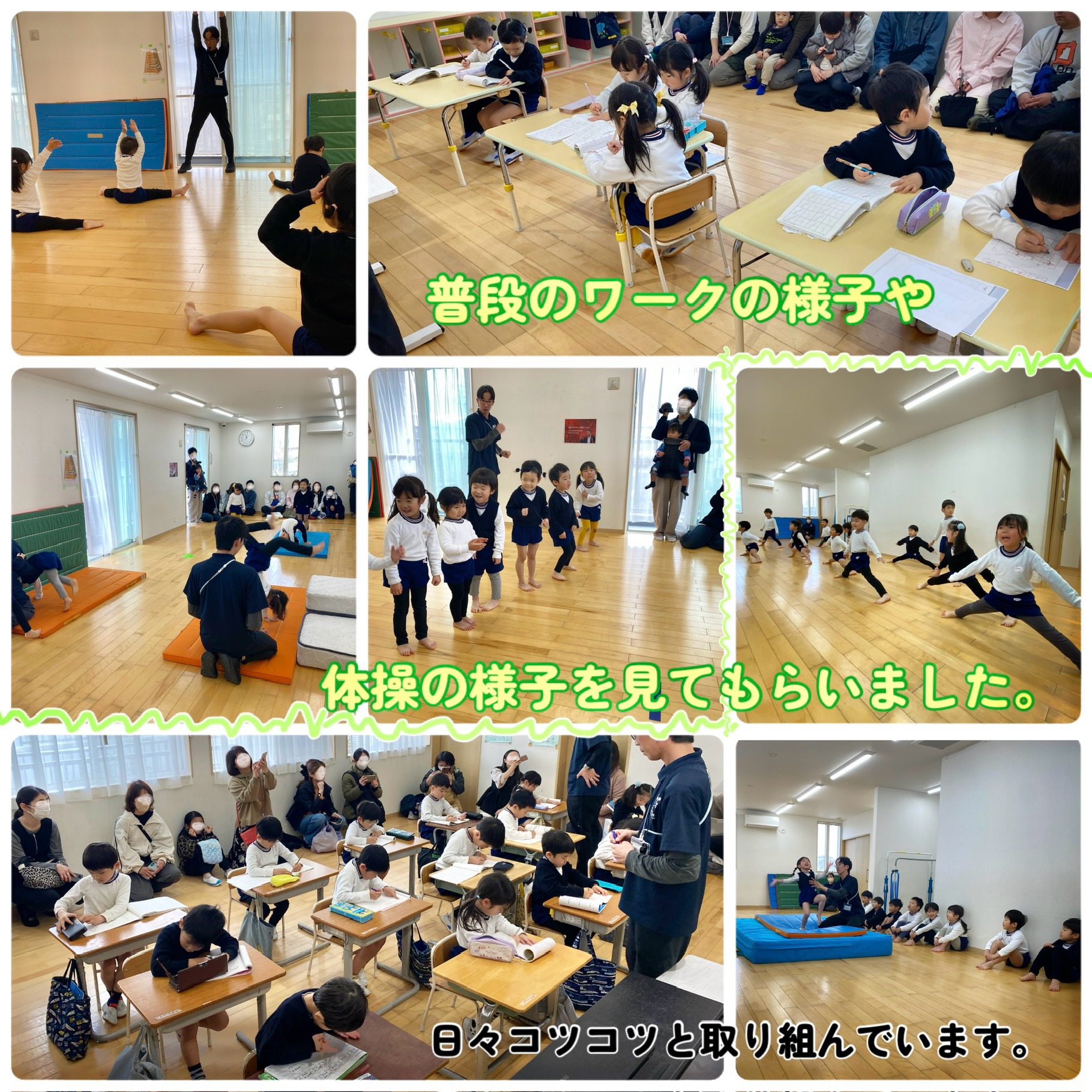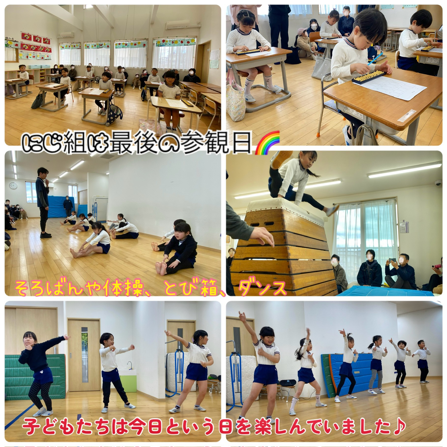 今回の参観日では、進級前、卒園前の”学期終わりの子どもたちの姿”に成長を感じていただきたく構成を組みました。とても短い時間でほんの一部分でしかありませんでしたが、子どもたちは色んな成長を感じさせてくれましたね✨